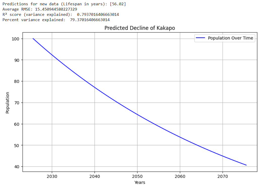 Figure 8. Graph showing predicted decline of the Kakapo16,26(lifespan : ~60)