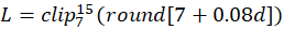 Lesson size L (words per flash-card “page”) was then set by a linear rule: