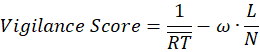 Here RT means reaction time (ms); L means lapses (trials with RT > 500 ms); N=20 means total trials; w=0.7 weights the lapse penalty. Higher scores indicate faster, steadier alertness.These measures reflect each participant’s baseline alertness and impulsivity control. A lower mean RT and fewer lapses indicate higher vigilance capacity.