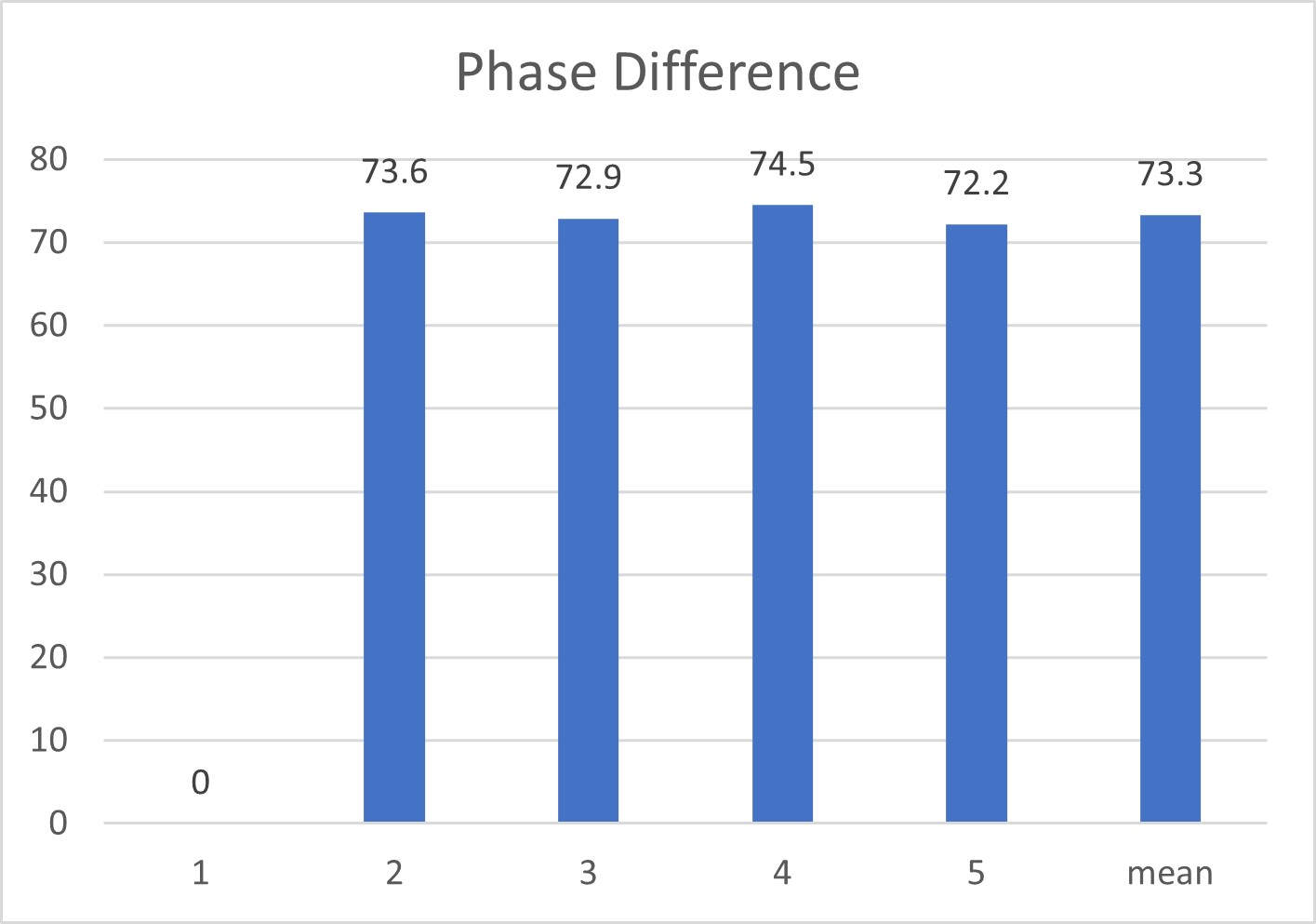 The model fitting verification results of the squat wave motion in LE SSERAFIM’s “ANTIFRAGILE” are shown in Figure 7, phase difference is shown in Figure 8, which 1-5 in figures are Karina to Eunchae orderly. In the verification of mathematical modeling, the judgment criteria for model qualification vary depending on different application scenarios. In the entertainment scenario, the qualified standards for the core indicators such as the coefficient of determination (R²) and the root mean square error (RMSE) are usually more flexible than those in traditional science or engineering fields. A comprehensive judgment needs to be made based on business goals and data characteristics. Regarding the modeling of dance movements, no public research has shown a universally recognized “qualified” standard. Considering the Korean characteristics of K-pop, this research referred to the research result from J. Kim in 20237, used the entertainment standards of SM Company in South Korea as the comparison value for judgment.