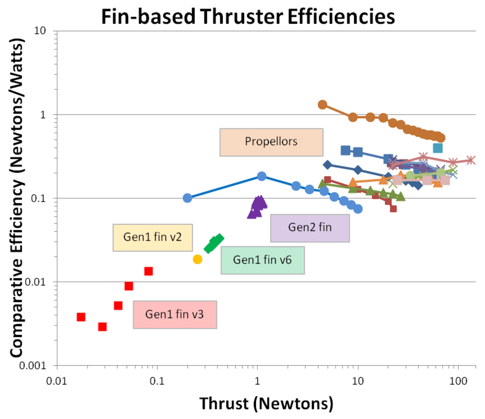 - J. Palmisano, J. Geder, M. Pruessner, R. Ramamurti, Power and Thrust Comparison of Bio-Mimetic Pectoral Fins with Traditional Propeller-Based Thrusters. 18th International Symposium on Unmanned Untethered Submersible Technology (2013). [↩] [↩] [↩] [↩]