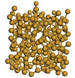 Crystalline silicon was modeled as a cubic structure with a diamond lattice (Figure 1). A lattice constant of 5.43 Å for silicon was used, consistent with reported values20,21. The cell dimensions were set to 16.29 × 16.29 × 16.29 Å, and the crystalline silicon had 216 atoms. Periodic boundary conditions were applied in all three dimensions. To create the amorphous silicon, the crystalline structure was gradually heated to 2300 K till it melted. Then the structure was cooled back to 300 K fast enough such that the silicon structure solidified before it could reform into a crystal causing it to develop irregularities22,23. To remove excessive clumping around the center, the cell size was rescaled to 14.66 × 14.66 × 14.66 Å (Figure 1). The amorphous silicon also had 216 atoms and periodic boundary conditions applied in all dimensions.