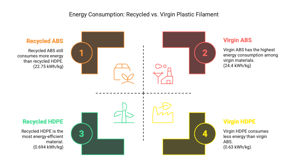 Material inconsistency is another challenge that limits further adoption. Kassab et al. note that proper collection and sorting of plastics is “critical” because mixed polymers have different melting points and behaviors6. Without standards, plastic waste materials can be unpredictable. In practice, recycled filament often requires additives or blending to achieve a virgin-level performance.