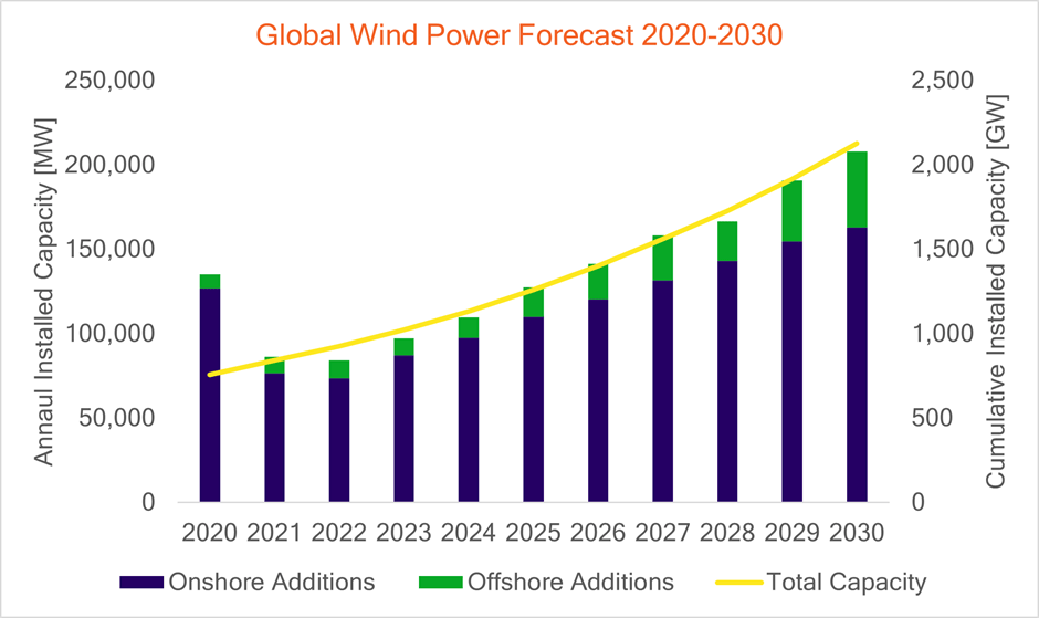 Global wind capacity is projected to rise from 651 GW (2019) to 1,123 GW by 2025, driven by supportive policies and increasing demand for clean energy.47
