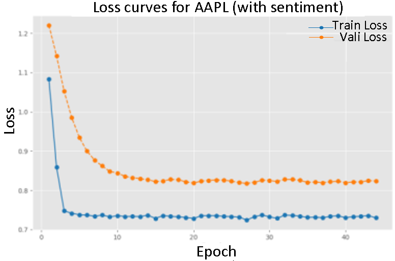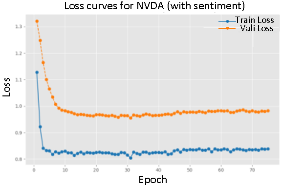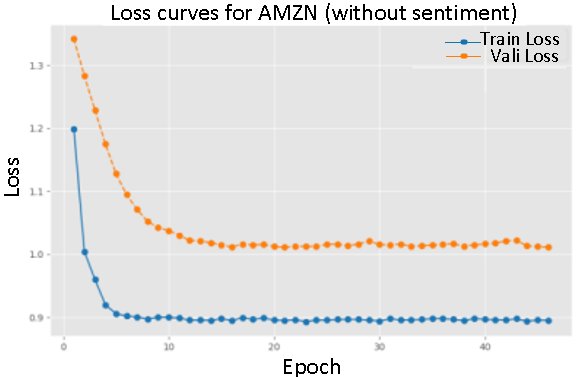 In contrast, training with sentiment data demonstrated a slower convergence, particularly evident in the loss curves for AMZN and NVDA. This suggests that sentiment data provides valuable.