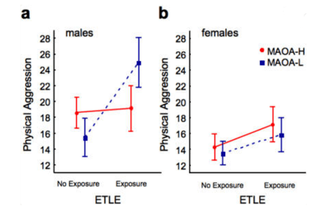 - G. Frazzetto, et al. Early trauma and increased risk for physical aggression during adulthood: the moderating role of MAOA genotype. PLoS One 2, e486 (2007). https://doi.org/10.1371/journal.pone.0000486 [↩] [↩]