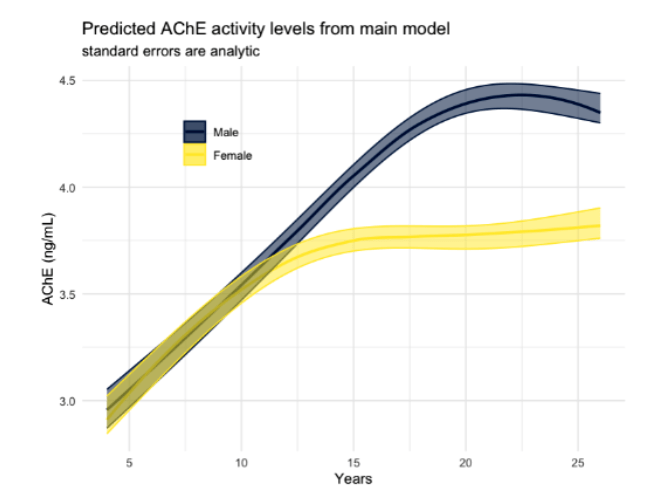 While the findings provide insight into normative developmental trends in AChE activity, they remain correlational rather than causal. The study did not directly link increased AChE activity to specific neurological outcomes or disease states, limiting its ability to confirm whether altered enzyme levels contribute to the etiology of neurodegenerative conditions such as Alzheimer’s disease. Additionally, other potential confounding variables, such as genetic polymorphisms, nutritional status, inflammation, or concurrent exposure to other neurotoxic agents, were not controlled or explored. These omissions leave open the possibility that observed AChE differences reflect broader systemic factors rather than targeted enzyme dysregulation.