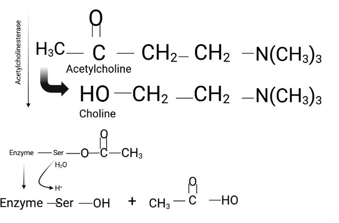 The enzyme features two active subsites: an anionic subsite, which binds acetylcholine, and an esteratic subsite, which facilitates hydrolysis. During neurotransmission, acetylcholine is released into the synaptic cleft and interacts with postsynaptic acetylcholine receptors to propagate signals responsible for muscle contraction9. Simultaneously, AChE hydrolyzes acetylcholine, terminating the signal and preventing excessive stimulation. The resulting choline and acetic acid are recycled to replenish neurotransmitter reserves9.