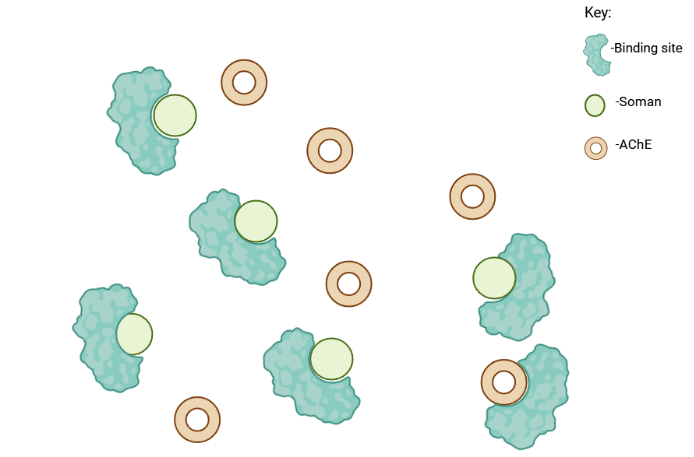 However, AChE can be inactivated by organophosphate (OP) compounds, which form covalent bonds with the serine residue at the enzyme’s active site16. This inhibition disrupts the enzyme’s function, leading to sustained muscle contraction and, in severe cases, paralysis. There are also neurotoxins such as Soman and sarin that inhibit acetylcholinesterase by binding to its active center, but Soman causes much faster aging, leaving the enzyme irreversibly inactivated17.