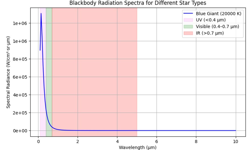 15000–30000 K): Emit mostly ultraviolet radiation.