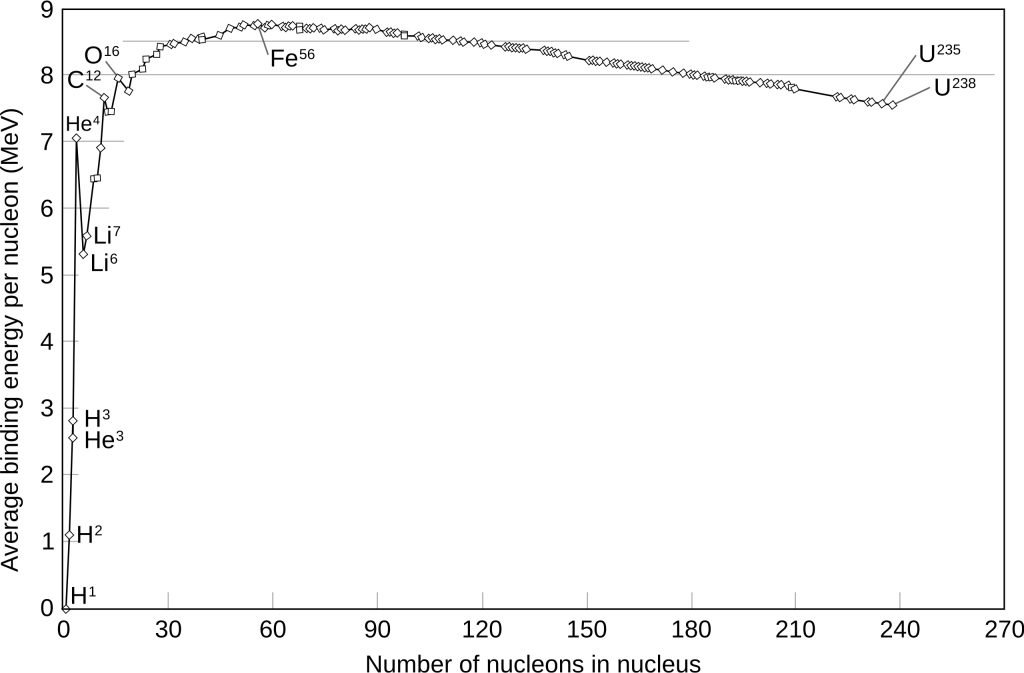- Fastfission. (2007). Binding energy curve – common isotopes. Wikimedia Commons. https://commons.wikimedia.org/wiki/File:Binding_energy_curve_-_common_isotopes.svg [↩]