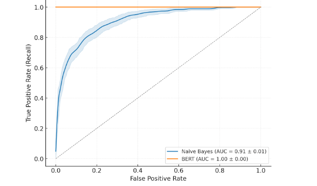 This standardized text pipeline ensured that linguistic features were normalized for both the statistical (TF-IDF and Naive Bayes) and transformer-based (BERT) models.