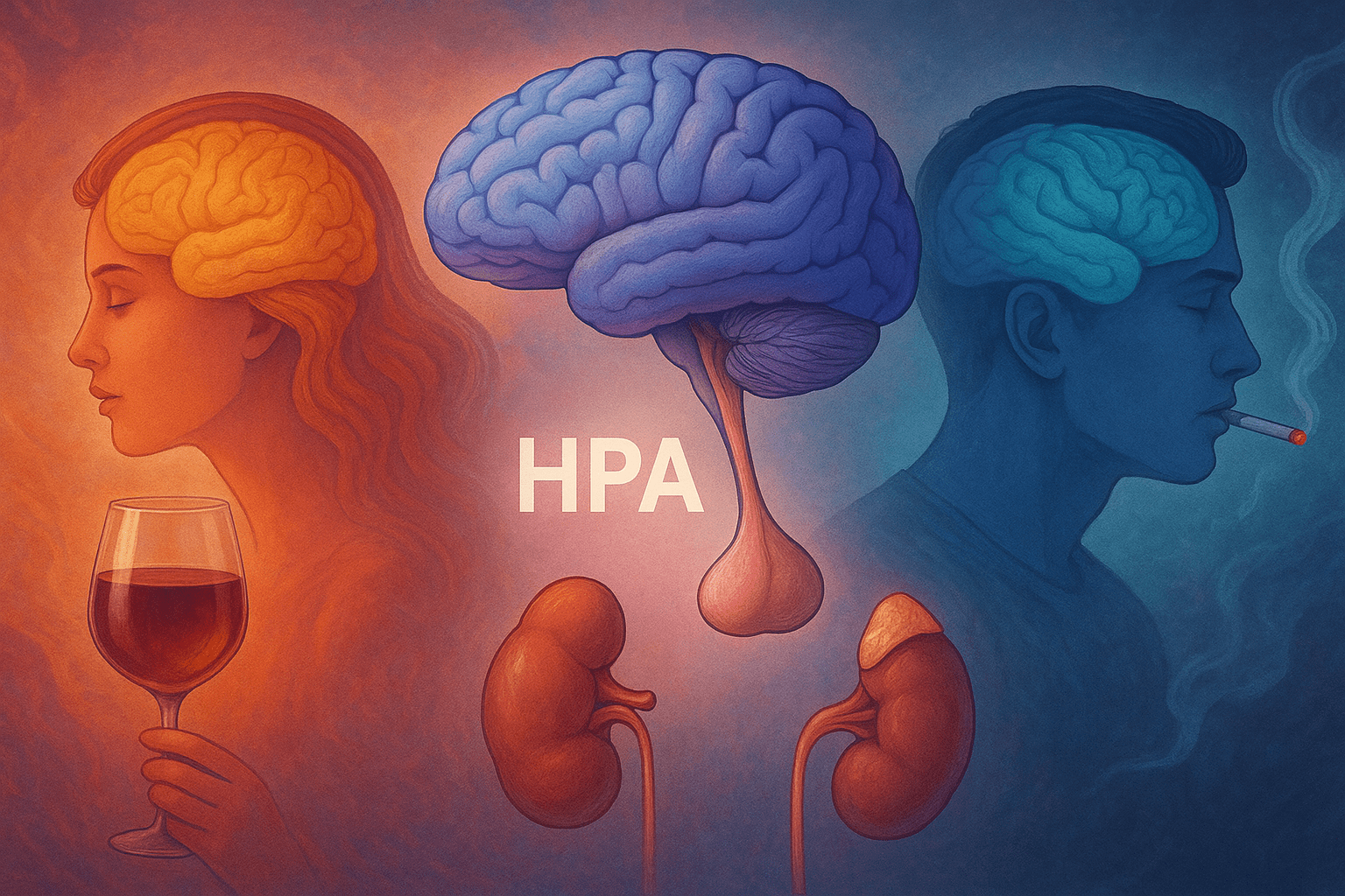 Nicotine, the primary component of tobacco, stimulates the HPA axis and leads to significant increases in cortisol levels13. This response is more noticeable in chronic smokers, suggesting that repeated nicotine use can sustain HPA axis hyperactivity14,13. Compared to men, women exhibit a blunted cortisol response to nicotine-induced stress, which increases their reliance on it. This response is also accompanied with lower ACTH levels, which correlated with a higher risk of relapse14. However, when conducting a preclinical study with the estrous cycle kept in mind, female rats had a greater ACTH and corticosterone response to nicotine than males15. For human males, high-nicotine cigarettes also increased ACTH significantly which was later strongly correlated to an increase of nicotine in the plasma16. During early periods of cessation, men had cravings for nicotine earlier than women did, but did not end up leading to relapse17. In preclinical studies researching behavior after chronic nicotine use, female rats had the greatest effects with decreased feeding and body weight and an increase in stress. Chronic use had little to no of the same effects on males18.