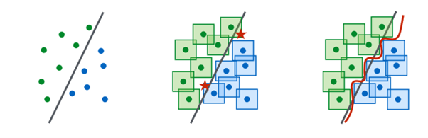Specific improvements in adversarial robustness from the addition of synthetic data is task specific. This improvement could be explained by exposure to high-quality synthetically generated data during training that improves model performance on edge cases. Adversarial attacks usually take advantage of edge-case scenarios that standard models may not have seen during training. Hence, training on high-quality synthetic data allows models to learn to recognize and counteract these cases. Madry et al. represent this using a diagram as seen in figure 14 below.