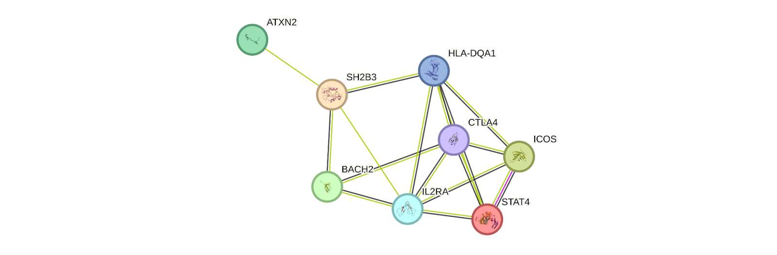In order to understand the functional significance of these nine overlapping genes, STRING analysis was performed. String analysis extracts functional proteomic analysis for each of these genes and thread these in the protein interaction network (Figure 3). Most of these genes were involved in T cell regulation for inflammation response and immunosuppression. CTLA4 is majorly expressed in T cells and works as a critical regulator in inflammatory response. Patients with RA and T1D are reported to have lower levels of CTLA4 mRNA and protein levels16. IL2RA is expressed high in regulatory T cells and involved in T cell immunosuppression for auto, allo antigens17. These common genes can be novel biomarkers and used to develop polygenic risk score for early detection and prevention of these autoimmune diseases.