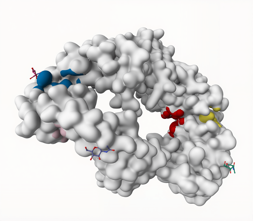 Small molecule binding sites on GITR were analyzed using a collection of computational tools, including investigations of the geometric and physical properties of binding sites to assess their potential, the identification of areas of high binding affinity based on energetic calculations, and the use of machine learning algorithms such as P2Rank. This analysis was conducted on the combined GITR-GITRL protein complex represented by PDB ID 7KHD, which contains 4 chains, labeled A, B, C, and D. Chains A and B correspond to GITRL, while Chains C and D correspond to GITR. Since the purpose of this study is to identify potential small molecule binders to the GITR protein, we performed binding site identification on Chains C and D only. All three methods identified multiple potential binding sites on the GITR protein for small molecule modulators, demonstrating that the GITR protein is a feasible target for small molecule immunotherapy. This step allows further screening for potential small molecule binding candidates to occur. The detailed results of binding site identification can be found below.