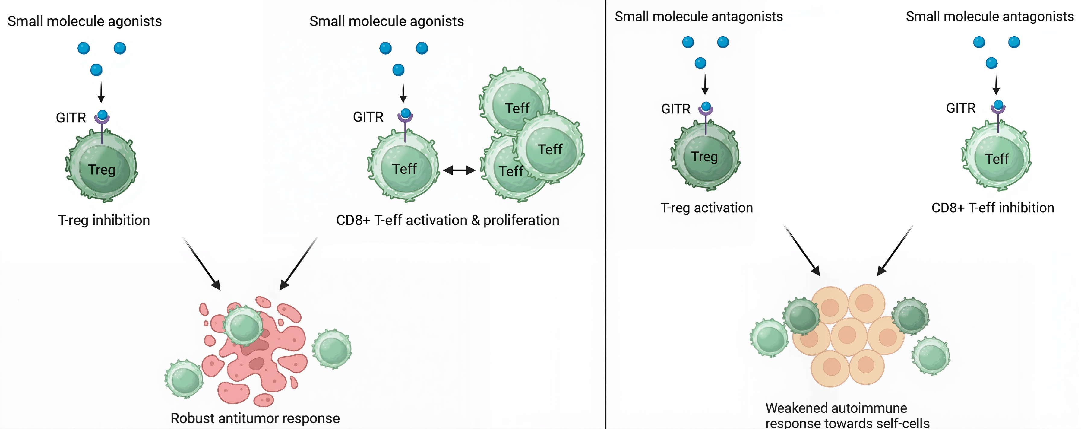 Figure 1. The effects of small molecule agonists (left) and antagonists (right) on the GITR protein.