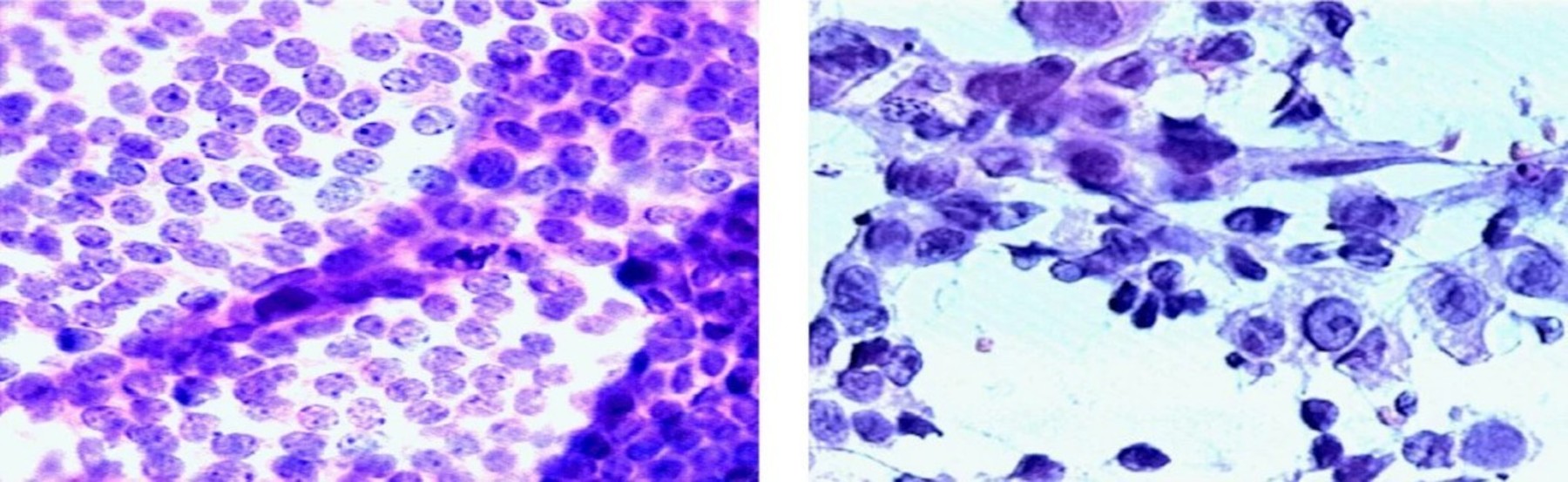Fine needle aspirate (FNA) of a breast mass is the type of data which this research focuses on. FNA is a type of biopsy performed on breast lesions that collects tissue and fluid samples, from which various attributes of the body cell nuclei, such as compactness, fractal dimension, and area, can be gleaned. Two examples of FNA from the work of Sizilio et al.6 are shown in Figure 1. Biopsies are often used to make a final, definitive cancer diagnosis7.