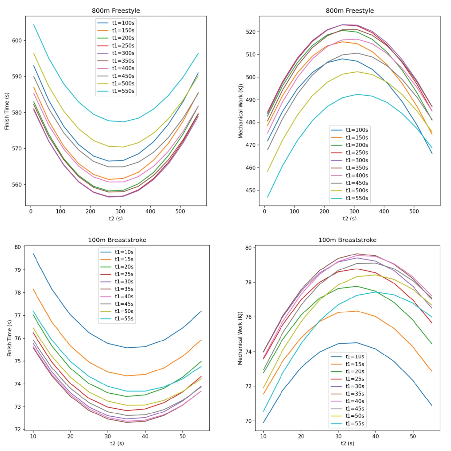 Toussaint & Beek (2002) compared sprint vs. endurance front crawl strategies and discussed how different mechanical outputs impact efficiency7, aligning with the energy-time tradeoffs explored in Section 3.2.