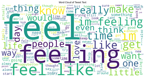 For the primary dataset of 16,000 tweets, exploratory data analysis reveals that 83.42% of the tweets are under 150 characters, as seen in the graph of tweet length distribution in terms of character numbers (shown in Figure 2). The word cloud graph in Figure 3 shows that the most frequently appearing words are “feel”, “feeling”, and “feel like”. The second dataset of 4,000 tweets has a similar distribution of length and similar frequently-appearing words as shown in Figures 4 and 5. The frequently appearing word “feel” suggests that both datasets are concentrated on tweets that express emotions, which is ideal for testing sentiment analysis models.