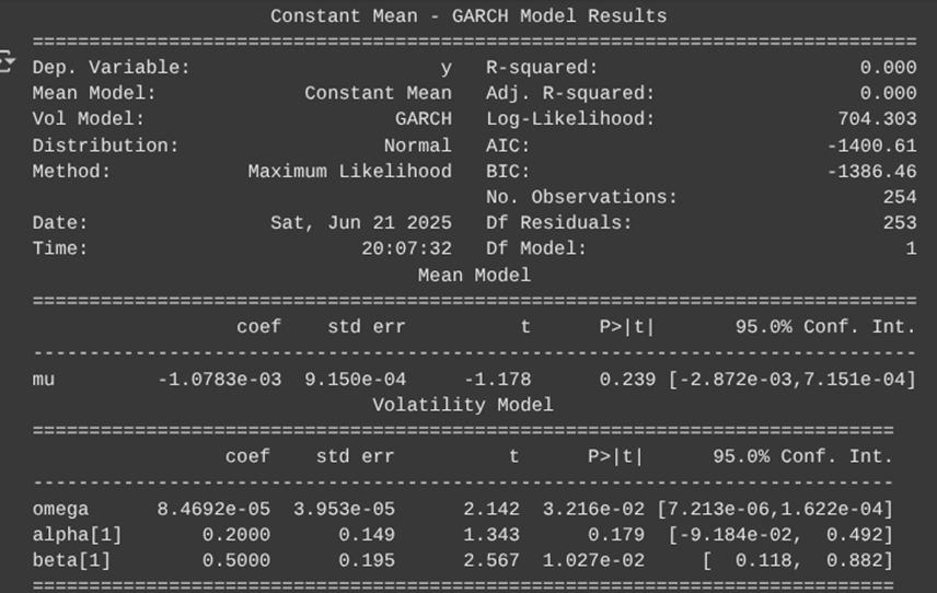 - KPSS test p-value = 0.1000 suggests stationarity (p > 0.05).