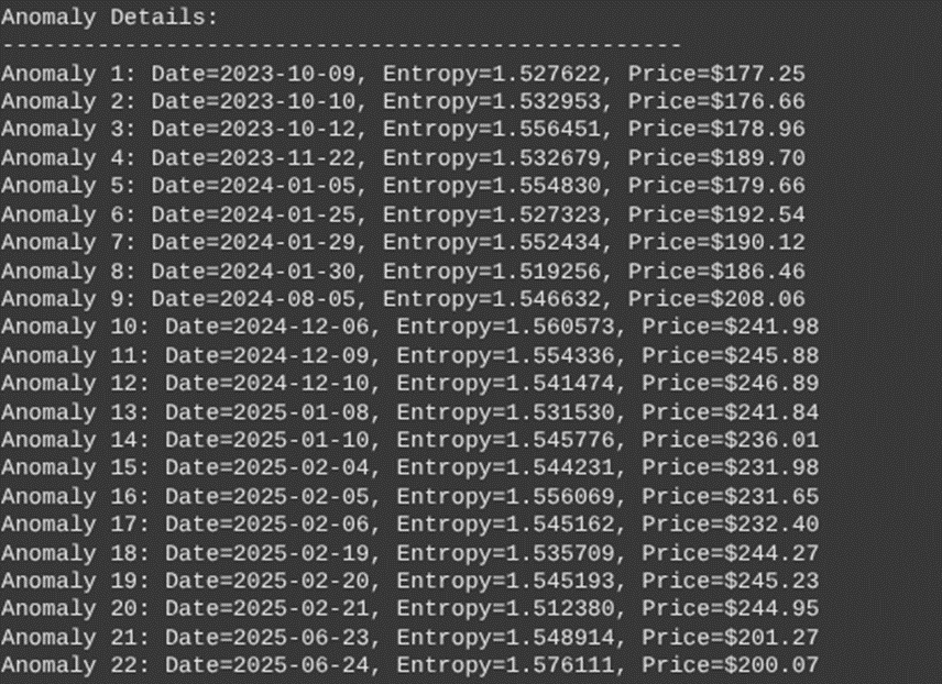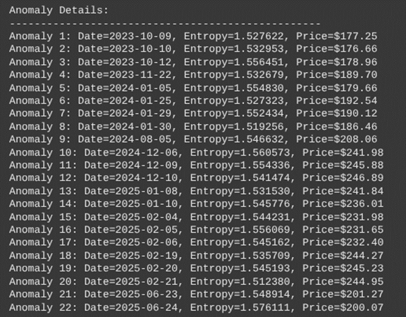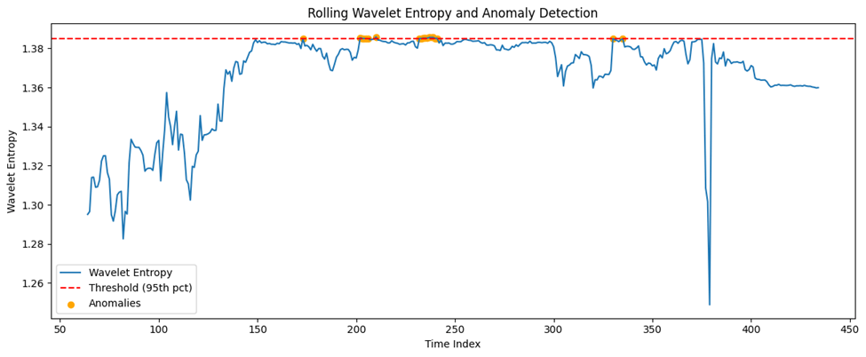 Our analysis produced several key insights. Firstly, we have shown that wavelet entropy is a robust indicator of volatility. Periods of high entropy reliably coincide with volatility bursts, especially surrounding macroeconomic announcements or earnings reports. Secondly, refined entropy windows can improve accuracy of stock price dynamic detection. The choice of window size has a pronounced effect on detection quality. The 64-day rolling window struck the best balance between noise suppression and event responsiveness. Lastly, we established a new strength of predictive power. Granger causality tests confirmed that wavelet entropy significantly predicts future realized volatility, suggesting potential applications in forecasting and risk management, as well as enhancing options trading and deep hedging.