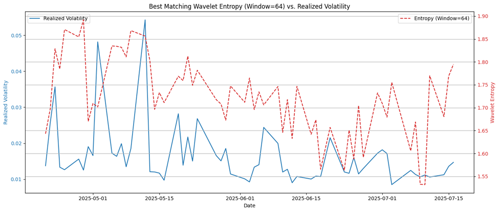 - In terms of alignment, both realized volatility and wavelet entropy series are aligned by date, producing a joint data frame ready for analysis