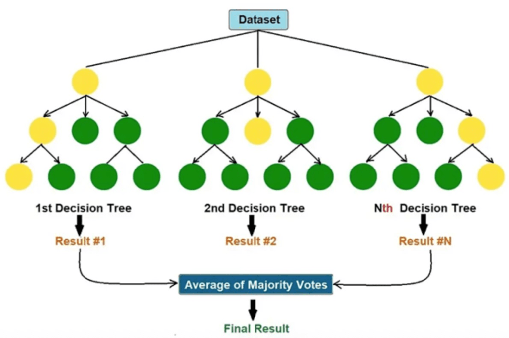 This model is an ensemble of multiple decision trees. Each tree is trained on a different subset of the training data with feature sampling, and their outputs are averaged to make a final prediction. This helps reduce overfitting and improves generalization. The maximum depth and random state were kept consistent with the single tree model. The most important inputs here are Max Depth and the number of trees it will aggregate. The Random Forest model was tuned with a randomized search over n_estimators