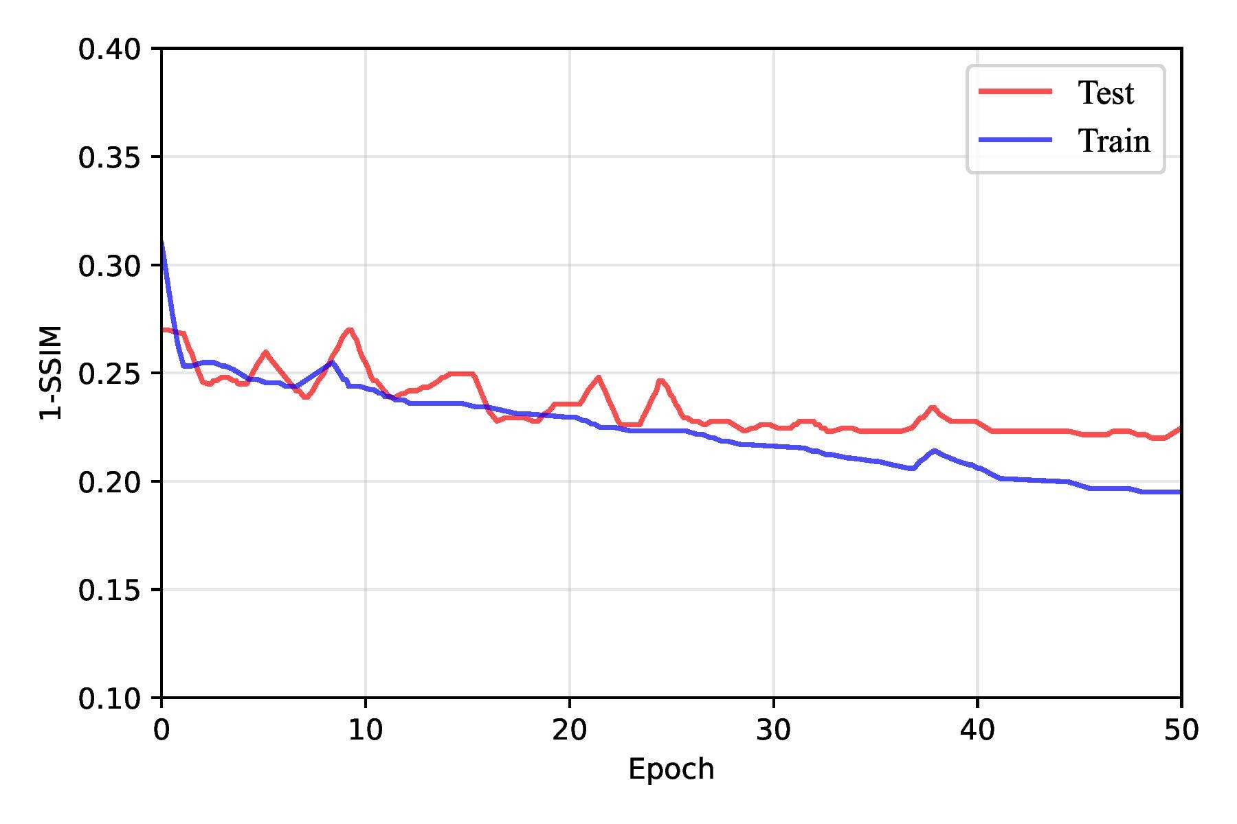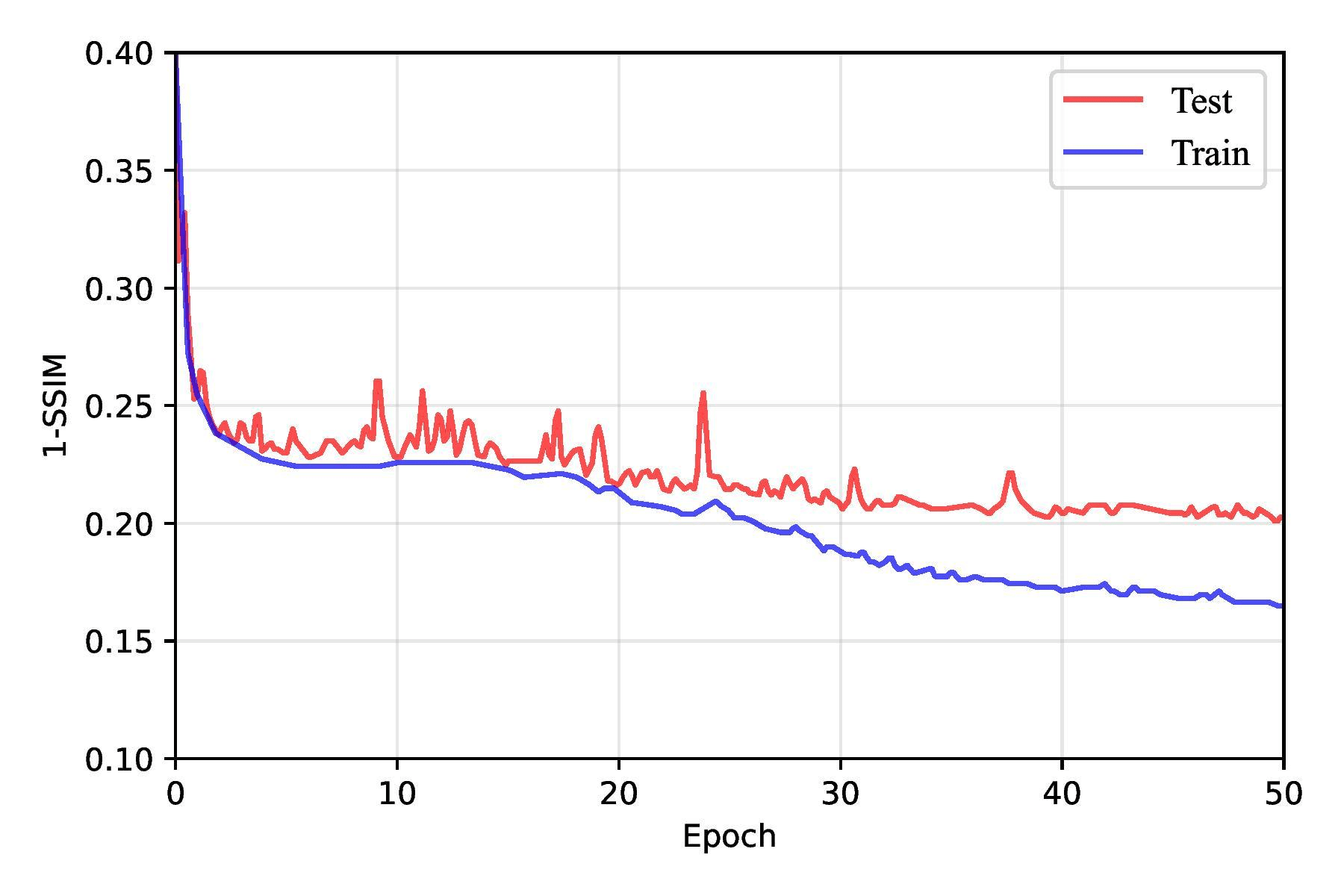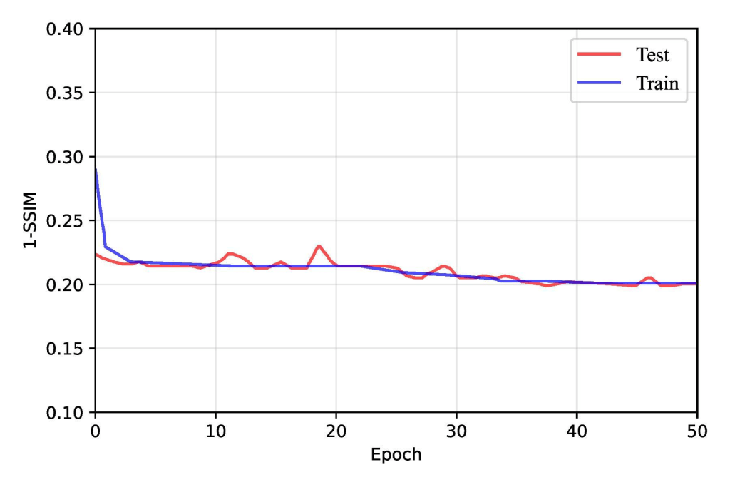 | Model | Train1-SSIM | Test 1-SSIM | Train Loss | Test Loss | Test IoU@τ=90% |