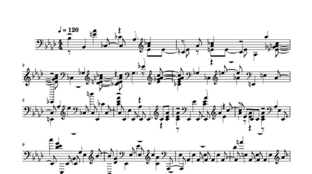 Transformer (5/10): Individual phrases were usually complete, but they could diverge significantly from the original. Sometimes, it reverted to constant repetitions of similar notes that have little connection to the original music.