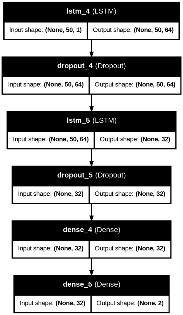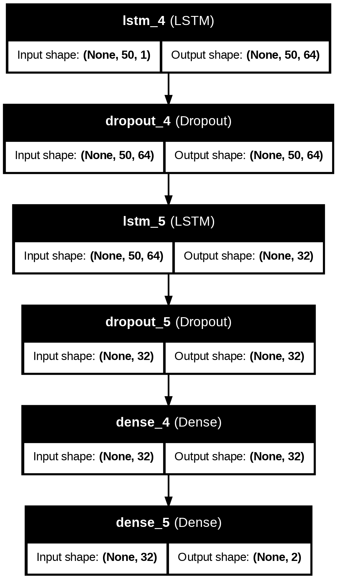 The LSTM Classification model follows the architecture in Figure S1. The first LSTM layer with 32 hidden units initially captures note features. A dropout layer with dropout=0.3 prevents overfitting. The second LSTM layer reduces the sequence to a fixed-size representation of shape (None, 52). Additionally, there is a dropout layer to prevent overfitting. After that, there are two Dense layers: one is a fully connected layer with a ReLU activation function, and the other is an output layer used for genre classification.