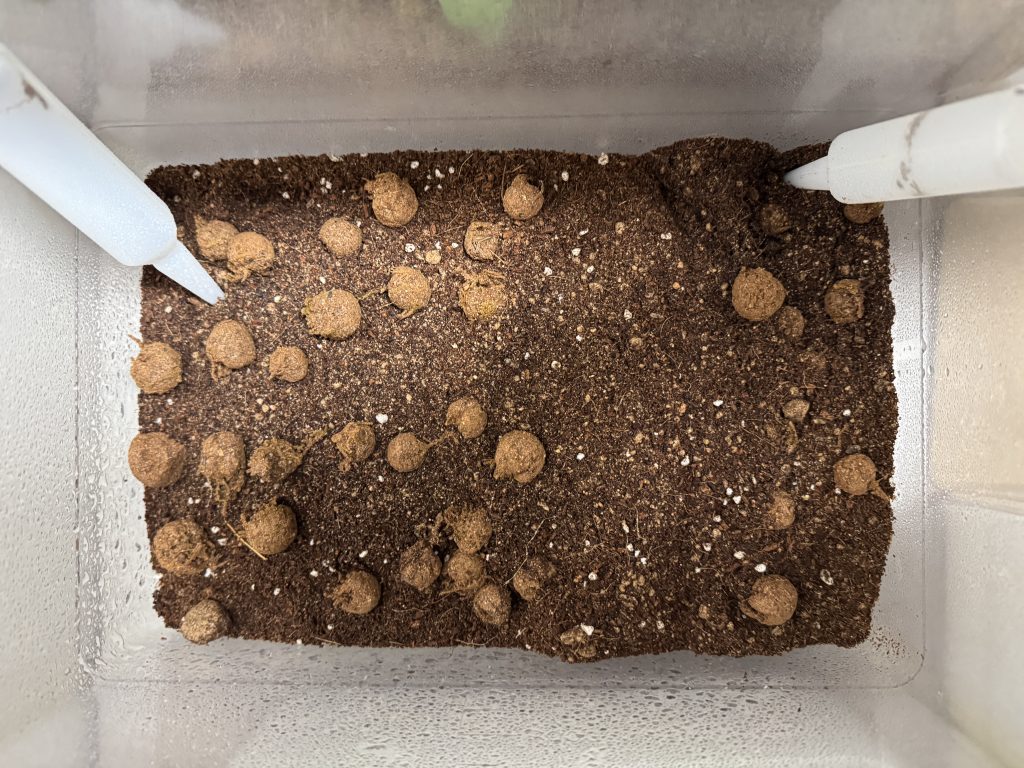 This experiment was conducted in the same way as the first experiment, with seed balls placed in a container with cultivation soil to observe survival.