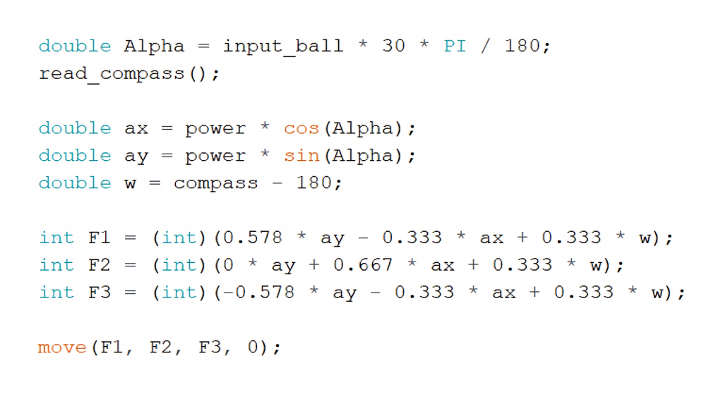 By combining these measurements, the robot’s position within the field could be accurately determined. Using inverse trigonometric functions, the angle between the robot’s current heading and the center of the goal was calculated based on changes in position.