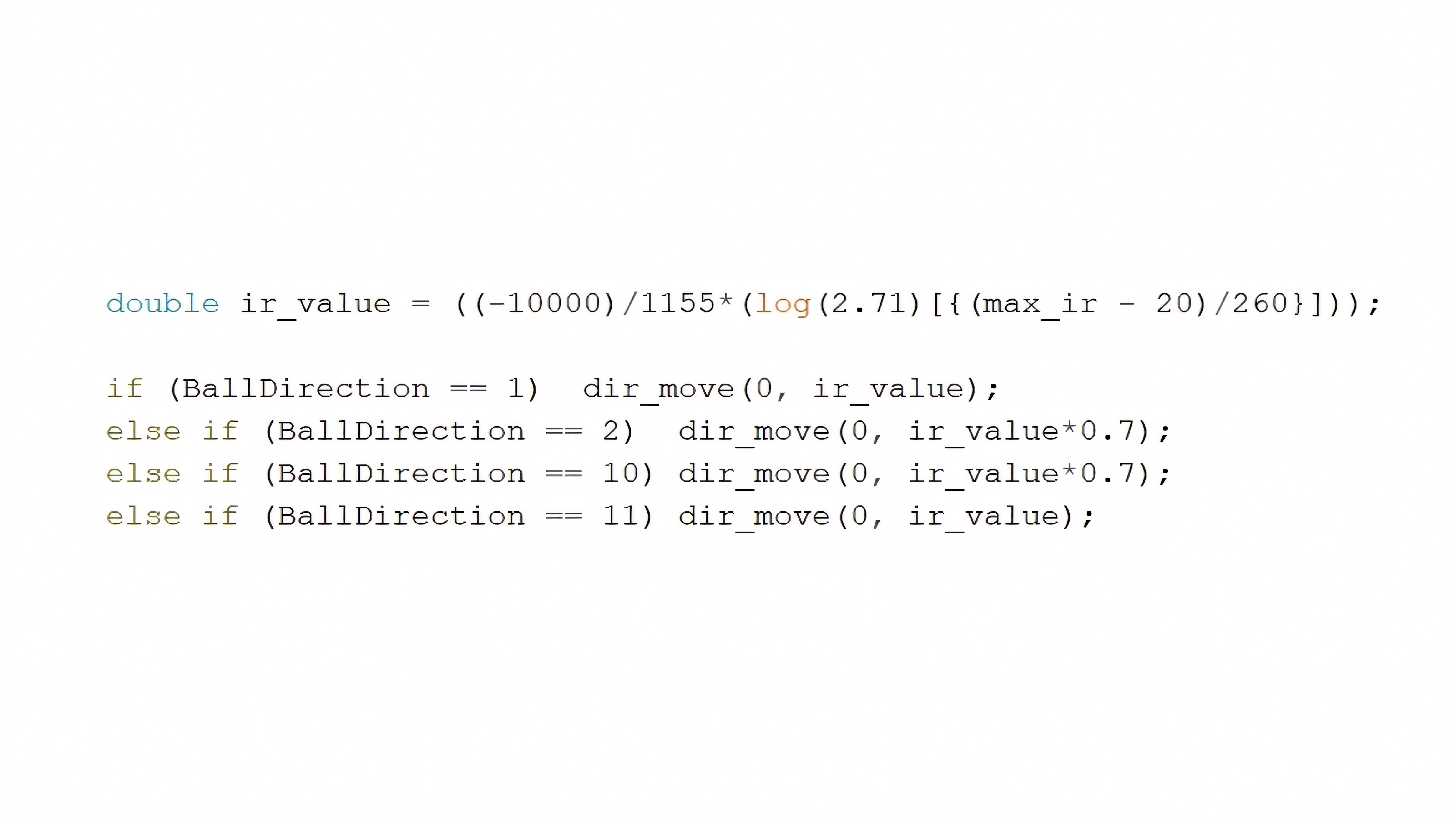 , were defined to serve as part of the ultrasonic sensor-based feedback control system for forward motion. These are designed to reduce the robot’s speed near the goal area, thereby increasing positional precision when delivering the ball into the goal. Fig 4.b presents the C-language implementation of the ultrasonic sensor feedback control system.