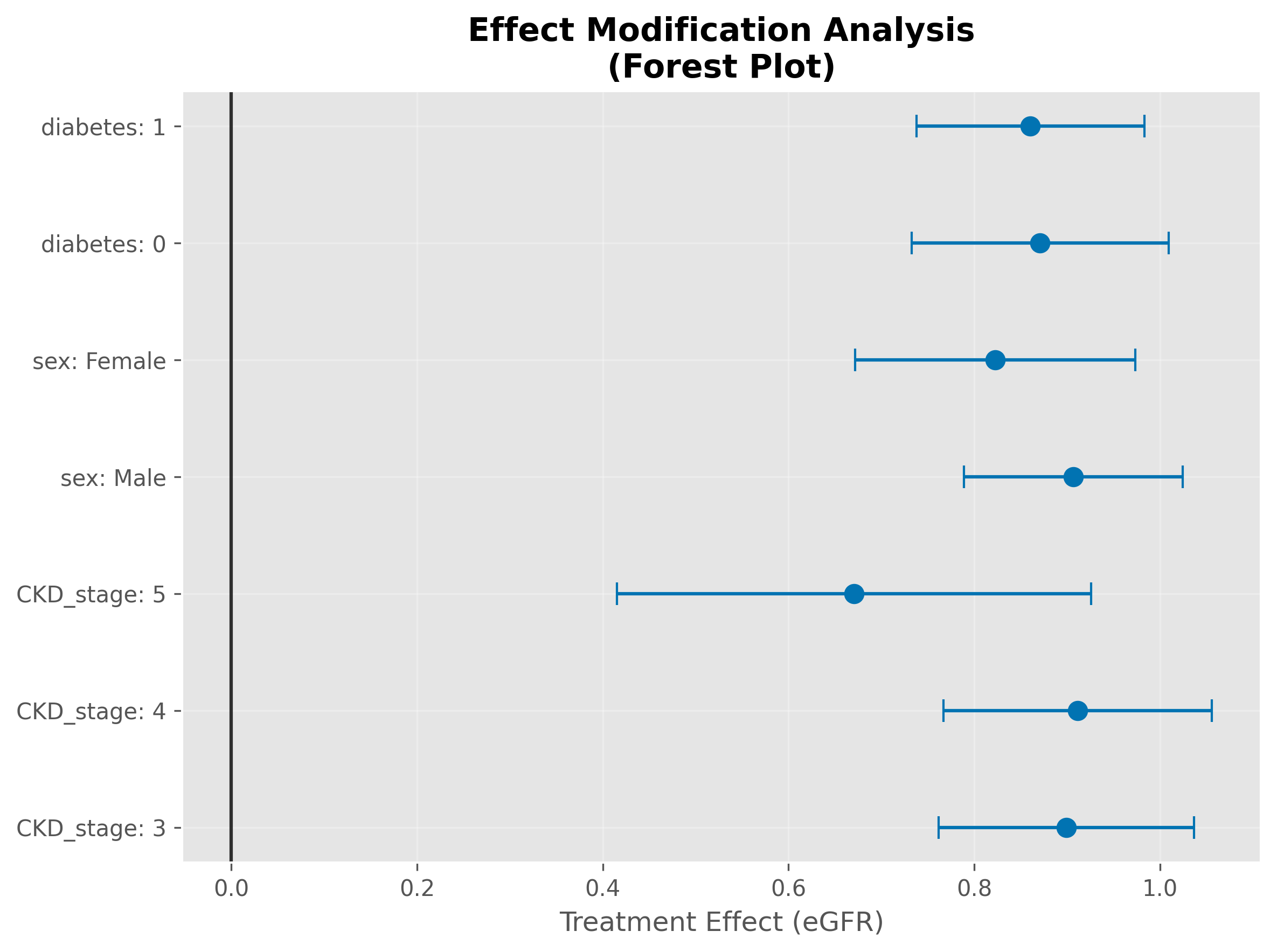 - Robustness and Lack of Heterogeneity: The consistent simulated treatment effects across diverse subgroups and the absence of statistically significant heterogeneity suggest that, under the model’s assumptions, the benefits are broadly applicable across various CKD patient profiles.
