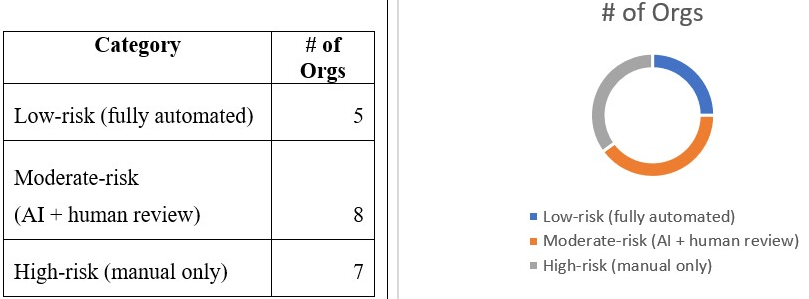 Finally, there is convergence across sectors. Even organizations with heavy regulation, like a MedTech company, are using AI extensively in low‑risk areas and cautiously in medium‑risk areas with human review. Consulting and cloud organizations reported similar patterns. This suggests these practices are likely to spread further as tools improve, not fade away.