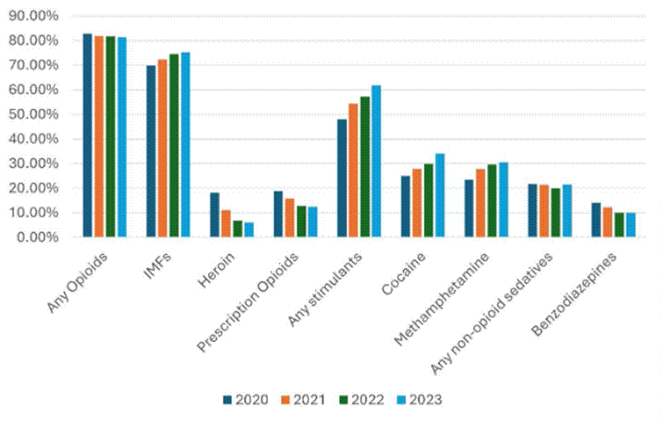 - Substance(s) involved in each overdose (ex. Opioids, IMFs, stimulants, antidepressants)