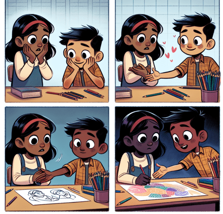 More specifically, this paper focuses on using Gen AI to produce social scenarios which can be used to teach children how to identify the size of the social problems. For children with self-regulation challenges, such as Autism Spectrum Disorder, identifying the size of the social problem is often a challenge which prevents them from putting on the proper response. An effective clinical strategy22‘23 used is one-on-one in-person therapy in which a psychologist or social worker guides children through hypothetical social stories, helping them learn how to classify the size of each social problem as it arises. A three point classification scale—whether the problem should be categorized as a “glitch”, “bummer”, or “disaster”—is commonly used. This scale can guide these children in appropriately classifying and responding to the problems. While traditional in-person therapy may be preferable, it can be costly and difficult to access more frequently for many families; the clinical social stories may also be limited and not always available in visual format. In light of this challenge, generative AI tools can be used to provide convenient, accessible, diversified, and affordable solutions for social scenario training through short video format.