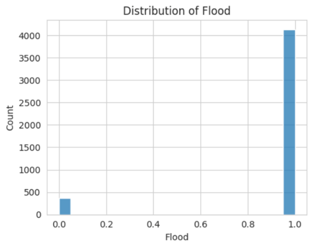 Of the original 20,544 rows in the dataset, 4,493 (21.87%) rows had flood labels while 16,051 (78.13%) were missing flood labels. Thereby, all unlabeled rows were excluded from training so that incorrect assumptions about flood occurrences were not made.