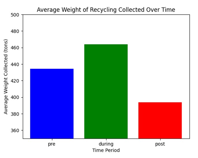 Despite these results, there are several limitations to this study. First, the recycling datasets used include multiple materials beyond plastic—such as metal, glass, and beverage cartons—making it difficult to isolate plastic-specific trends. While recyclable waste patterns may suggest plastic-related changes, they cannot be interpreted as direct measures of plastic pollution. Additionally, not all plastic is recyclable, and data specifically measuring plastic waste was largely unavailable. As a result, I relied on publicly available municipal data and Google Trends as proxies.
