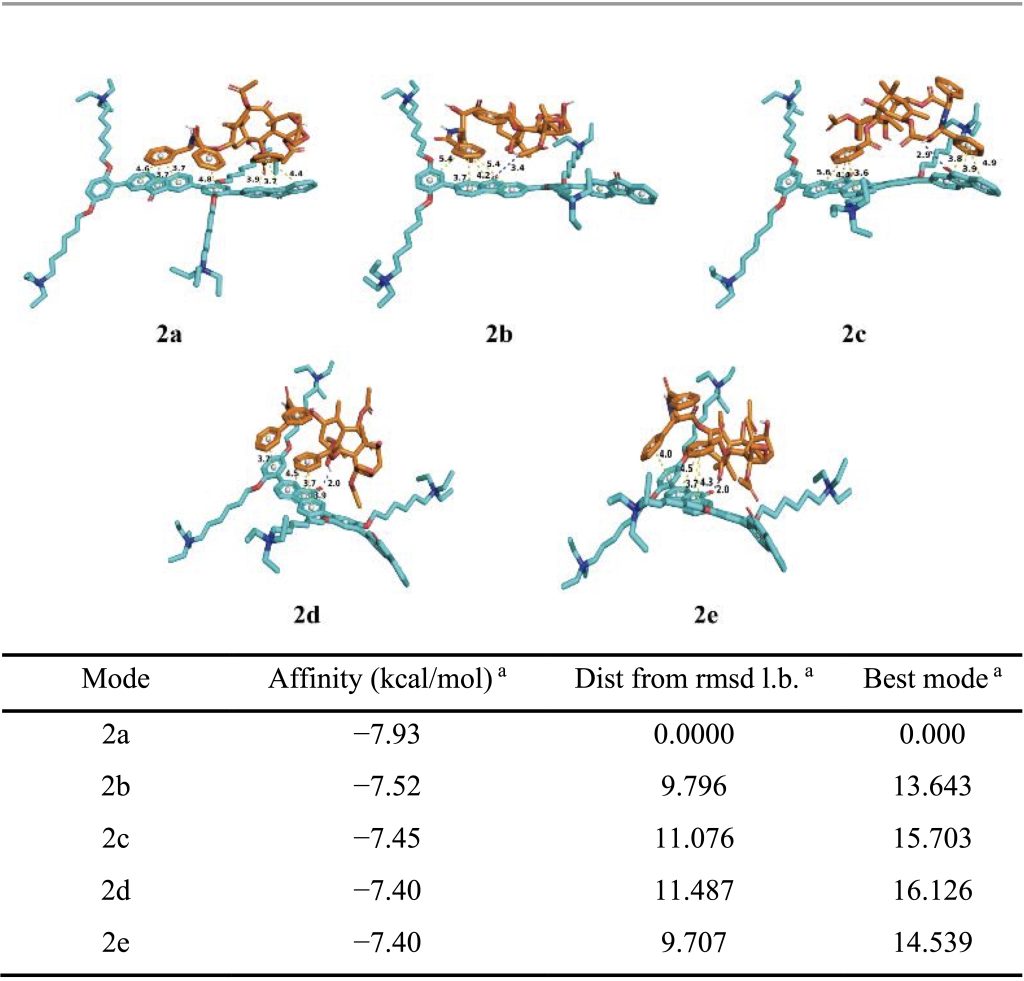 The molecular structures were built in ChemBioOffice 20.0 and energy-minimized using Chem3D with the MM2 force field to obtain low-energy conformations. Docking studies were carried out with MolAICal, using PFOP-NEt3(+) as the receptor and paclitaxel as the ligand13,14,15. A docking grid box (center_x = −0.6, center_y = 1.2, center_z = −0.2; size_x = 30, size_y = 30, size_z = 30) was applied around the receptor. All other parameters were set to default. The five best-scoring conformations (based on binding energy) were selected for further interaction analysis and visualized using PyMOL (Molecular Graphics System, Version 3.0, Schrödinger, LLC).
