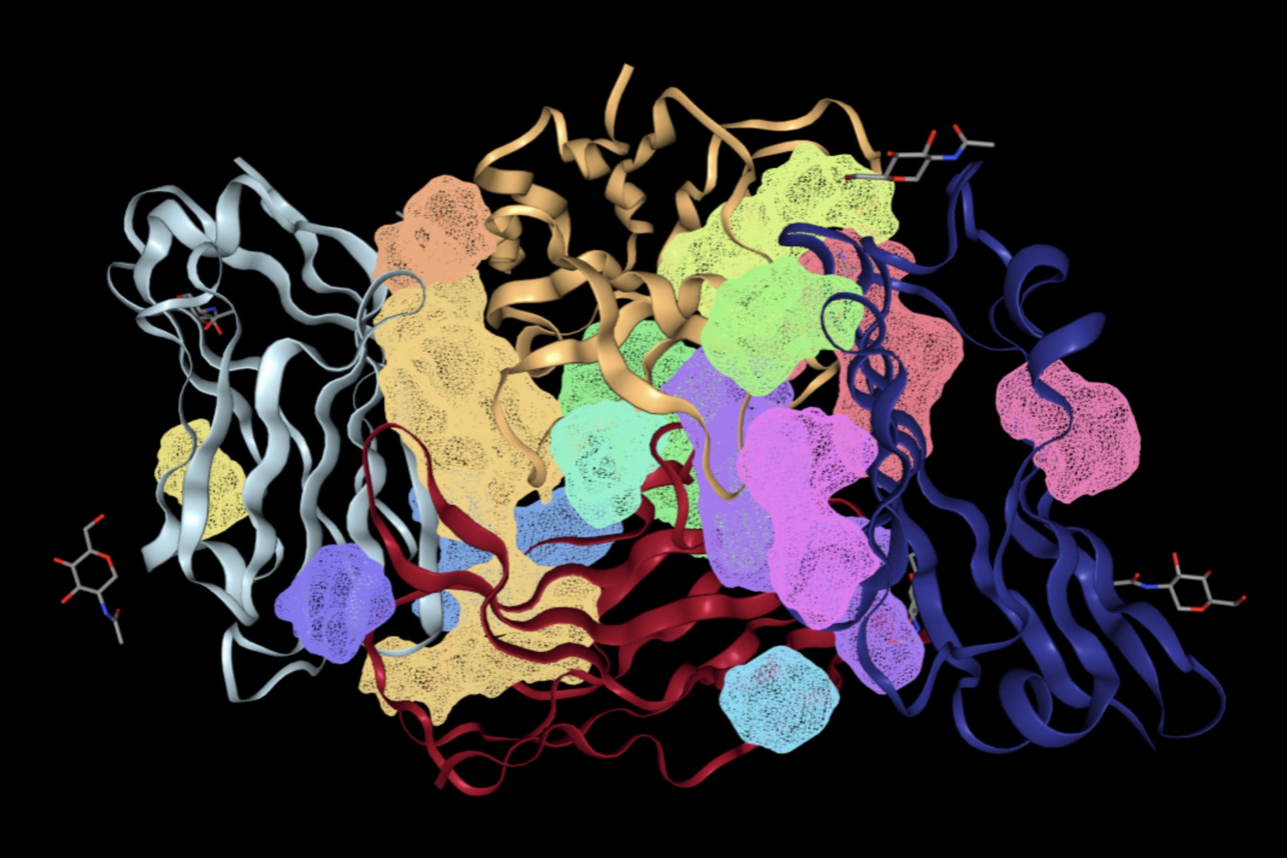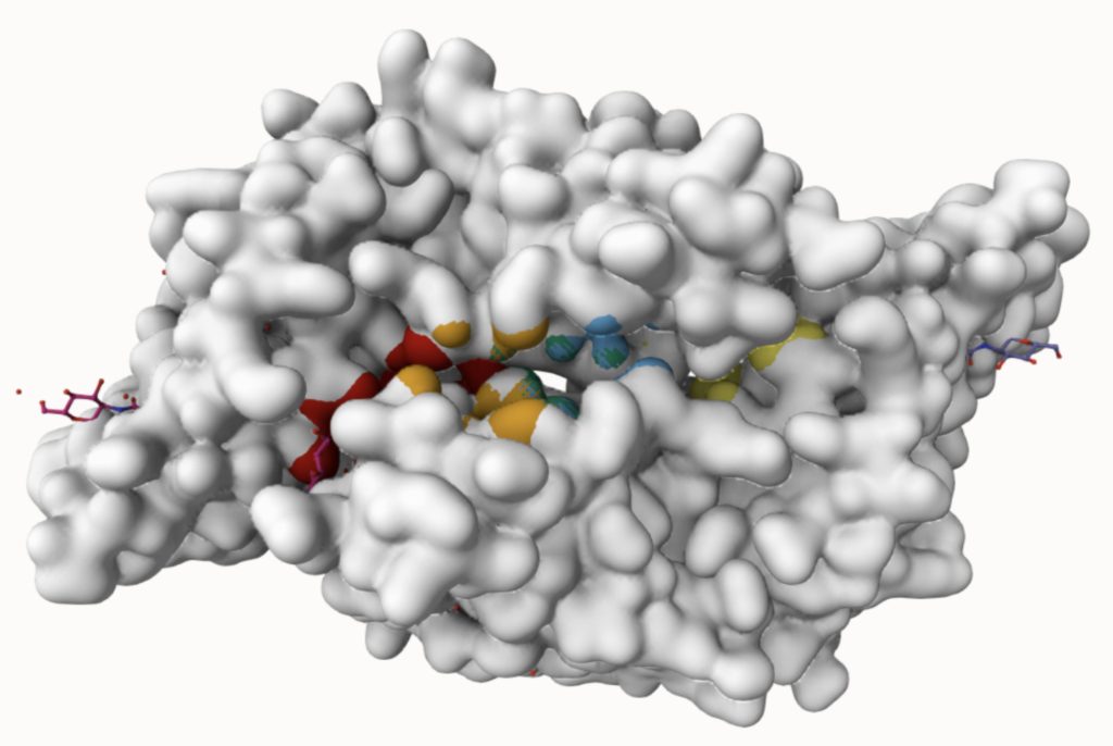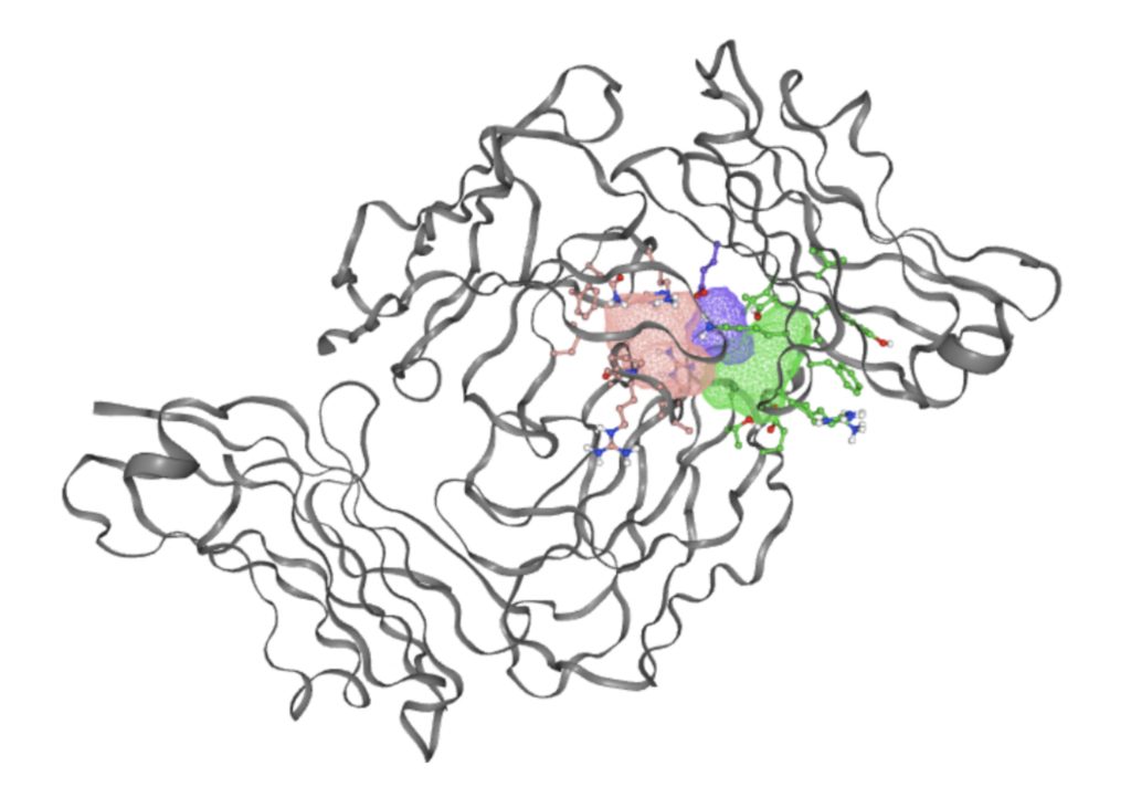 The FTSite website was then used to determine binding sites that would support an energetically favorable reaction. The resulting image of each binding site that meets this condition is shown in Figure 3.