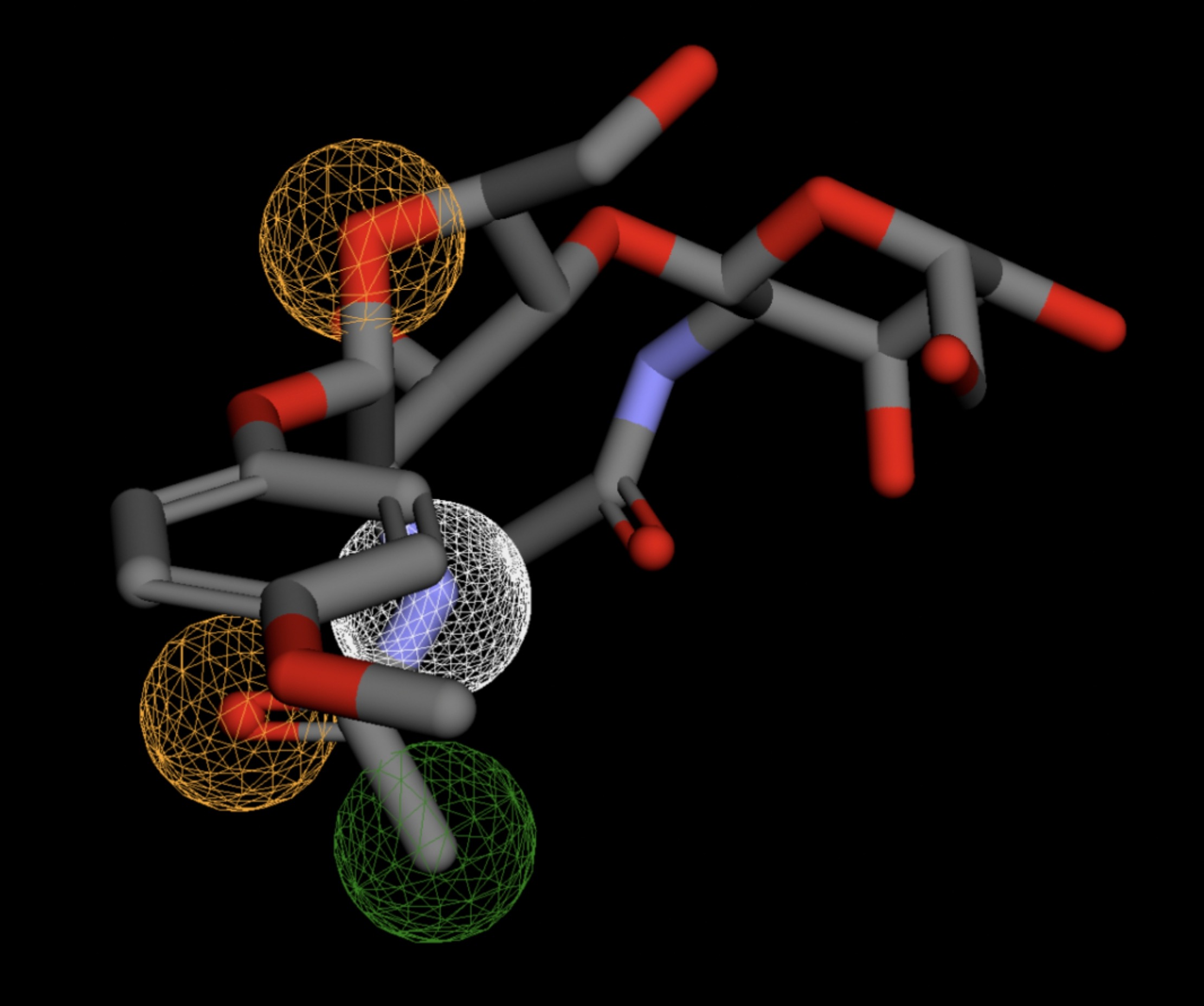 Table 4 shows the results of virtual screening for small molecule binders to CD47 using Pharmit. Each compound reported is retrieved from the MolPort chemical supplier database, These compounds were selected based on their close fit with the pharmacophore model of the binding pockets. They were ranked by their root mean square deviation (RMSD) scores, a metric that quantifies the alignment between a pharmacophore model and compound. A lower RMSD indicates a better spatial fit and a higher chance for binding affinity. Figure 5 shows the basic pharmacophore map prior to the virtual screening process.