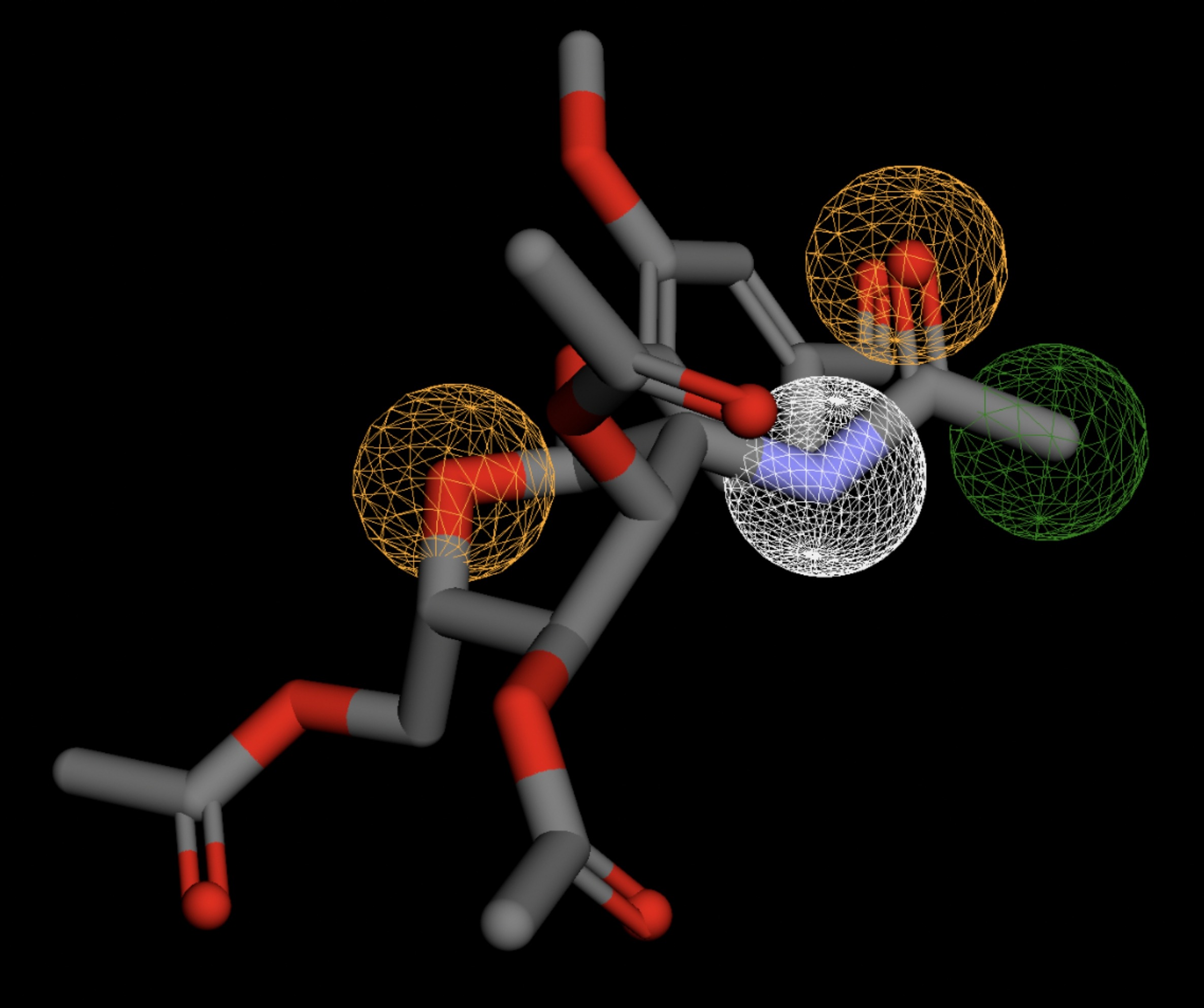All compounds noted in Table 4 had RMSD values between 0.058 and 0.060, indicating close structural alignment between the compound and the pharmacophore model of the binding pockets. Notably, several compounds had an RMSD of 0.058. These compounds likely align with interaction features desired for binding including hydrophobic and donor/acceptor interactions.