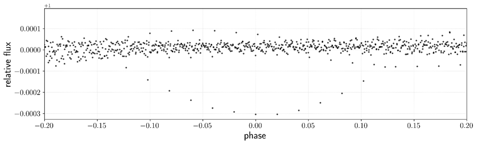 4 ppm15. Though it is important to note that the uncertainty reported in this paper does not incorporate formalities such as systematic noise, finite sampling, or photometric errors (limb darkening). Therefore, it underestimates the true uncertainty. Nonetheless, the resemblance in transit depth and radius ratio accounts for the robustness of the detection and modeling methodology.