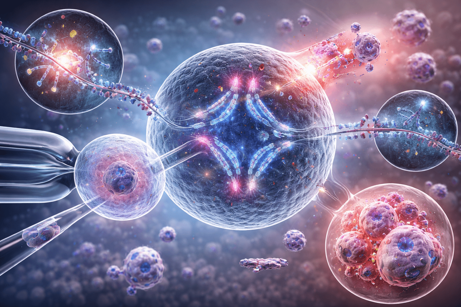 Single-cell multi-omics analyses in SCNT profile the genome, epigenome, transcriptome, and replication timing from individual cloned embryo cells. This approach maps catenation-induced transcriptional chaos in arrested blastomeres49. There is a growing possibility of turning the skill of producing direct copies of an embryo into a mastery that is globally practiced if more techniques to control abnormalities are invented. This would to help individuals, ultimately striving for a biotechnology revolution. Solving these replication-segregation bottlenecks could make SCNT clinically viable and move it from an experimental stage to a practical biotechnology.