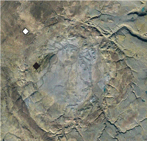 Figure 2 | Natural-color satellite image of Askja Caldera, Iceland, showing volcanic terrain with surrounding ridges and snow-covered areas.