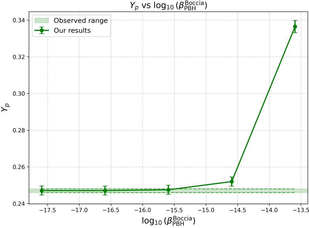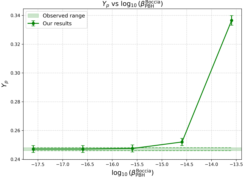 - A. Boccia, F. Iocco, L. Visinelli. Constraining the primordial black hole abundance through big-bang nucleosynthesis. Physical Review D. Vol. 111, pg. 063508, 2025 https://doi.org/10.1103/PhysRevD.111.063508 [↩] [↩] [↩] [↩] [↩] [↩]