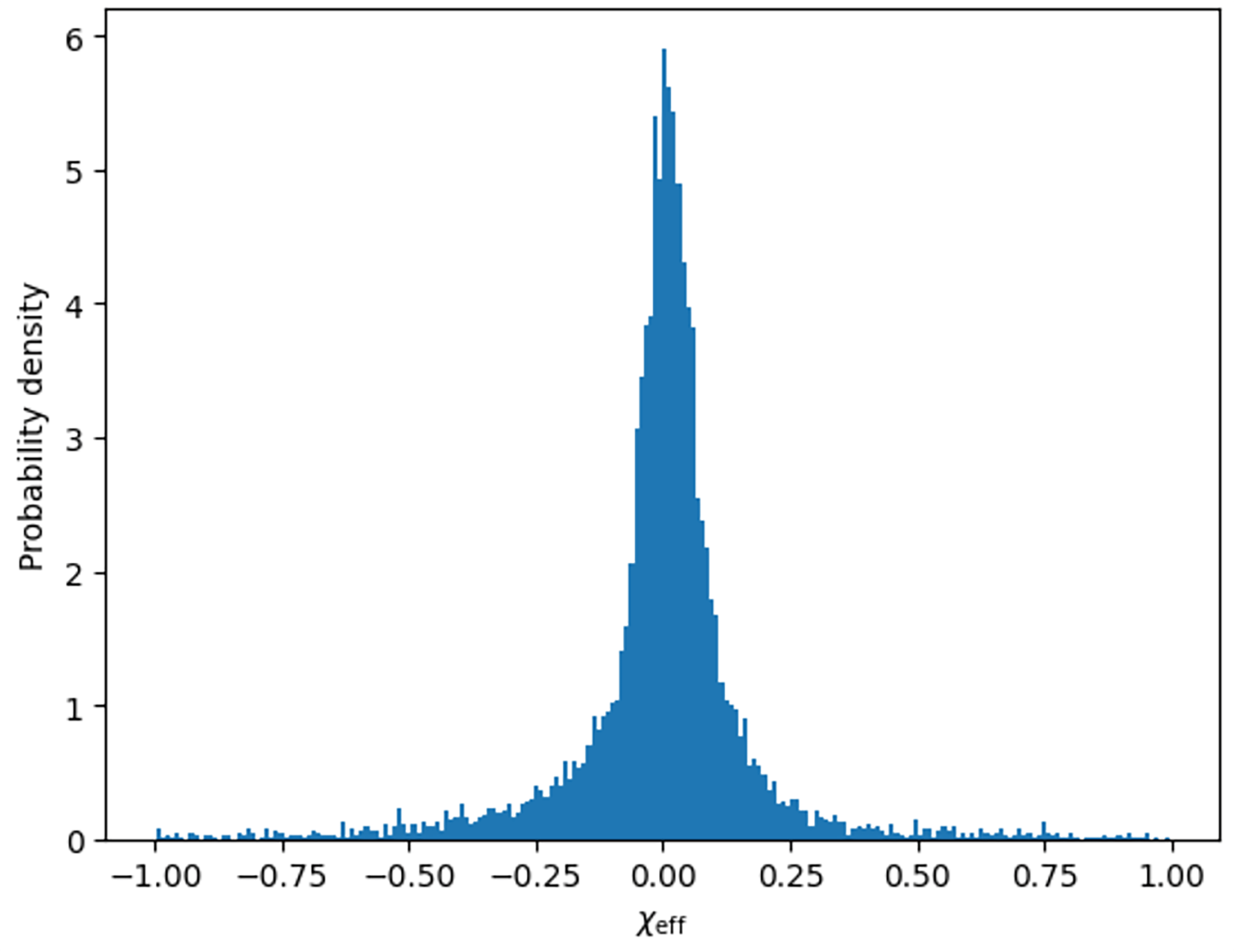 Considering these results, individual events with \chi_{eff} values near \pm 1 should be interpreted with caution. Their posterior distributions remain broad, and their credible intervals typically include substantially lower absolute values of \chi_{eff} . While such events are consistent with specific formation scenarios, including dynamical assembly or isolated binary evolution, the present data do not allow them to be classified as physically distinct outliers rather than statistical variations within a small sample. Overall, the jackknife resampling supports the conclusion that the population mean \chi_{eff} is consistent with zero within current uncertainties, while highlighting that larger samples will be required to more tightly constrain the population width and to assess the physical significance of extreme \chi_{eff} events.
