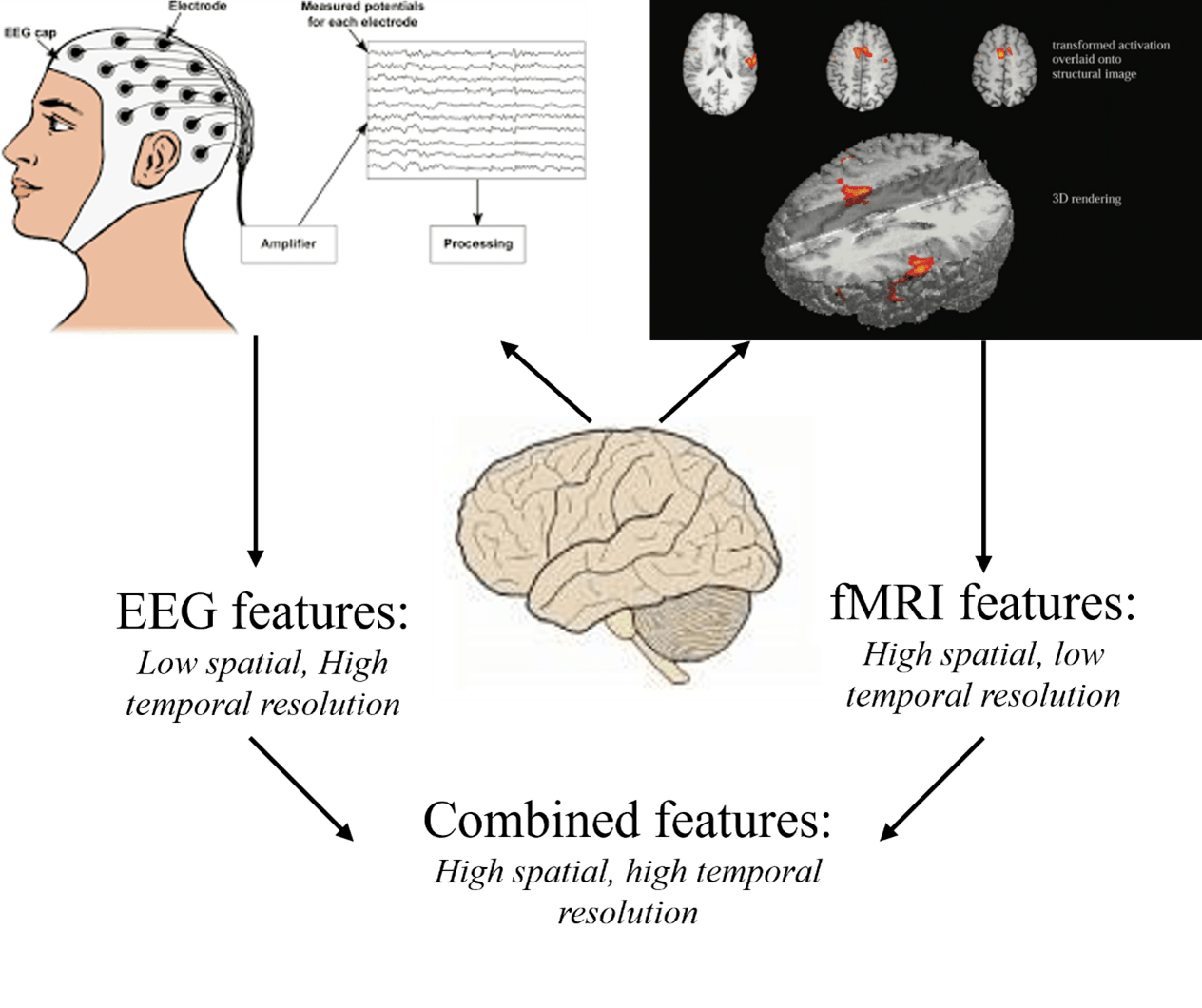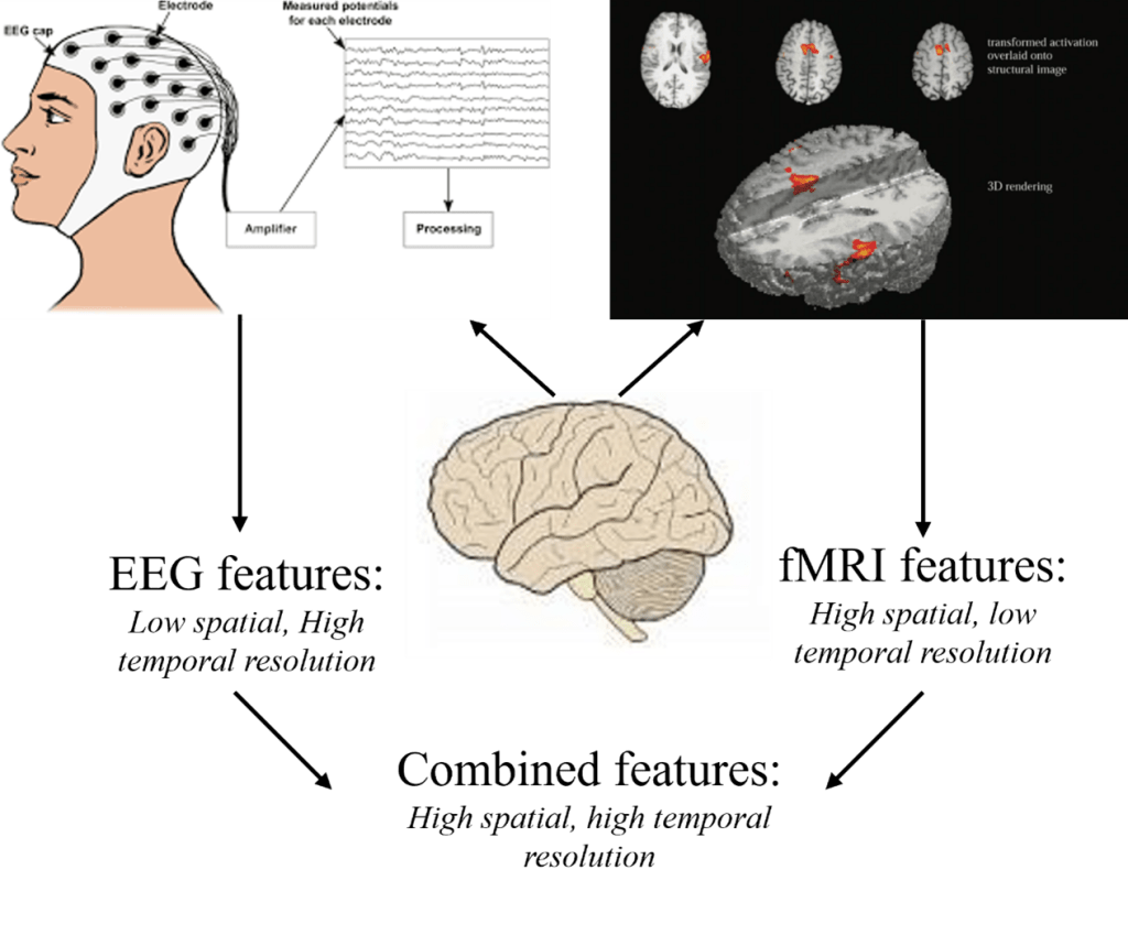 Fundamental to these discoveries are the research methods employed. In humans, functional magnetic resonance imaging (fMRI)4 and electroencephalography (EEG)5 are two key techniques for studying brain activity and function. fMRI measures brain activity by detecting changes in blood flow, providing high spatial resolution images that reveal which brain areas are involved in specific cognitive tasks (Figure 1). Whereas, EEG records the electrical activity generated by neurons, providing excellent temporal resolution that can capture the timing of brain processes (Figure 1). The two techniques complement each other, with fMRI highlighting where brain activity occurs and EEG detailing when it occurs (Figure 1). This combination allows researchers to gain a comprehensive understanding of the dynamic function of the brain and its response to various stimuli.